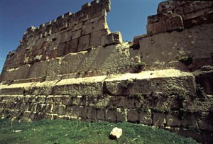 “The great mystery of the ruins of Baalbek, and indeed one of the greatest mysteries of the ancient world, concerns the massive foundation stones beneath the Roman Temple of Jupiter. The courtyard of the Jupiter temple is situated upon a platform, called the Grand Terrace, that consists of a huge outer wall and a filling of massive stones. The lower courses of this great outer wall are formed of huge, finely crafted and precisely positioned blocks. Above the six blocks on the western side are three even larger stones, called the Trilithon, whose weight exceeds 1000 tons each. These great stones vary in size between sixty-three and sixty-five feet in length, with a height of fourteen feet six inches and a depth of twelve feet.”(www.sacredsites.com)